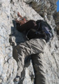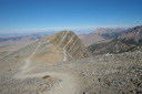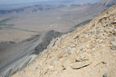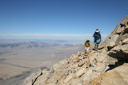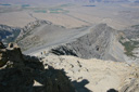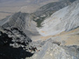 The down-climb, an awkward third class maneuver where you lower yourself feet first, face to the rock, down a 15 foot cliff, normally deposits you on a snow bridge—the snow had completely melted by late August of 2007. According to those in the know, the down-climb is the last problem on the ascent, and it was a problem I could not overcome. No matter how hard I tried to talk myself into taking that step of faith, my mind would not allow it—the fear got the best of me. Dejected, I resigned myself to the fact that I had come as far as I was going to go on Borah Peak—I watched with envy as those already on the summit proudly waved the flag. We were probably only 800 feet below the summit and approximately 90 minutes away—it was noon when we reached the down-climb—so close, yet so far away. Nothing wrecks a romp in the mountains quicker than the agony of defeat, and despite trying to convince myself that I could do this for nearly 30 minutes, defeated I remained. Heartbroken and apprehensive about the trek back across COR, I left my dreams of summiting Borah Peak behind and focused on the return trip—turning back at 12:30 pm.