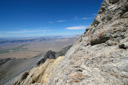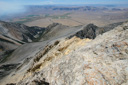 Making our way up the rock slab required the use of handholds to ascend, and the loose rock made footholds precarious. Nonetheless, we made it to the top where we found ourselves close to the infamous Borah Peak down-climb. For many people, COR barely raises their blood pressure, but for those of us with that creeping fear of exposure, this section is gut-wrenching—unfortunately for me, my fear (which manifests only under certain circumstances) was getting the best of me. The thought of climbing back the way we had just came literally terrified me, not to mention the fact that I was still facing the down-climb—the crux of the entire route.