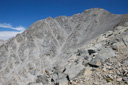 Soon, we found ourselves below the ridge crest on the north side of COR—we were following a proper trail, interspersed with some class 3 scrambling. Eventually, the trail became non-existent and we were left with the task of climbing a steep, couloir filled with loose rock. We managed to climb the chimney-like formation, hoping throughout that when we reached the top we would be in a position to best judge our next move—we had no way of knowing if we were headed in the right direction. From our vantage point at the beginning of the climb, we could see the summit block of Borah Peak and two hikers on the flat trail running along the spur—we yelled to them to ask if we were headed in the right direction and they responded that we were—our confidence bolstered, we continued.