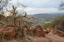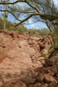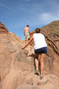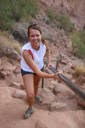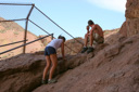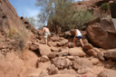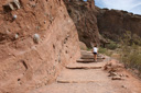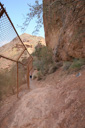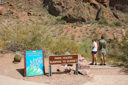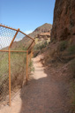 We were prepared for rough terrain, boulder scrambling, and the inevitable negotiating of loose rock and gravel, but we were not ready for the heat and the steep terrain—despite knowing the elevation gain in advance. It is hard to realize how steep the trail becomes even with the facts in hand—in fact, the trail is so steep in spots that a handrail is provided for balance. When we set off on the trail, the temperature was a scorching 102° F and we all knew that we were in for a strenuous hike.