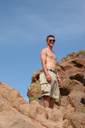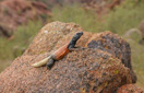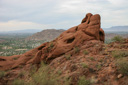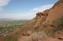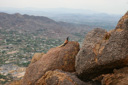 Soon after leaving the handrail behind, the hardest segment of the hike begins—the trail climbs steeply up boulder-filled gullies and along airy ridge crests to a final rocky ravine that leads to the soaring summit of Camelback Mountain. In the hour that it took to climb the final 0.6 miles, we encountered numerous lizards, butterflies, and birds—of particular interest was our first sighting of a chuckwalla. We spotted the chuckwalla, a large lizard found primarily in the arid regions of the southwestern United States, perched on a boulder overlooking the Scottsdale area—his reddish midsection immediately caught our eye and confirmed for us that we were seeing a Common Chuckwalla. As mentioned, there were also several birds, including numerous hummingbirds, flying around the summit area along with several species of swallowtail butterflies.