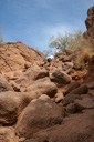 Having just arrived in Phoenix, we were on our way to the Grand Canyon for our rim-to-rim adventure, but before leaving the Phoenix area, we just had to take a crack at Camelback Mountain. Before arriving at the parking lot, we could see the outline of the mountain, which truly does resemble a kneeling camel, from several points along the interstate—Camelback is a two-summitted mountain, the higher eastern summit forming the camel’s hump and the lower western summit representing The Head.
