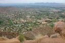 Camelback Mountain, an iconic peak towering above the greater Phoenix area, rises to a height of 2,704 feet. The trail to the summit gains 1,300 feet of elevation over a mere 1.16 miles—making the gradient over 100 feet per 0.1 mile—yeah, it's that steep. If you are willing to brave the steep trail and the often-blazing temperatures, make your way towards Echo Canyon Park and follow the Summit Trail to the highest peak in the Phoenix Mountains.