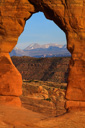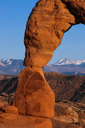 Delicate Arch is an isolated remnant of what is known as a sandstone fin—the center of the fin has been eroded away over eons of time leaving a perfect 46-foot arch, an arch that stands vigil on the edge of the canyon to this day. Adding even more majesty to the scene are the distant La Sal Mountains, which create a perfect backdrop for photographs of the arch.