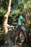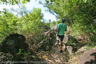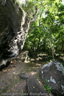 We hiked further down the path until we came to a spur trail, where hidden in the dry coastal forest there sits a small cave that was once used by the brigands as a hideout. The cave, a mere alcove in a large rock, once provided a hiding place for the runaways—the ceiling is still blackened from the smoke of their cooking fires.