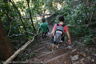 The second half of the climb was much more difficult, but still quite doable, thanks to steps that were built into the trail—there was even a railing at one particularly exposed section. Every so often, Pick and I would stop and take a drink of water, but Lucian never touched a drop. On a comical side note, I have to mention that Lucian carried his water up the mountain in an old rum bottle—classic! The climbing was intense, and sometimes it was more like scrambling then hiking, but step by step, we moved closer to our goal.