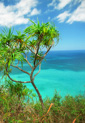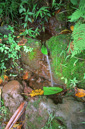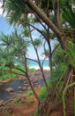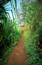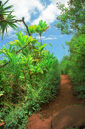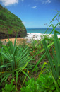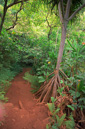 On our way to the beach, we were able to see so many beautiful plants and interesting sites—all along the trail, you will encounter Pandanus trees, which have a really cool root system—they commonly have many thick prop roots near the base, which provide support as the tree grows top-heavy with leaves, fruit, and branches. There are also guava and banana trees, and many species of flowers, including orchids and heliconia. Some of the other interesting sights we saw, included a drinking fountain that someone had fashioned out of a leaf, and a few "offerings" tied to trees. There is certainly never a lack of visually intriguing sights along this amazing trail—a trail through one of the most incredibly beautiful landscapes ever created by nature.