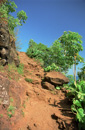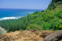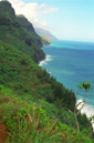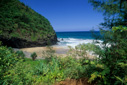 Kalalau follows an ancient route formed by the early Hawaiian people, and as you hike along the path, pause and ponder the fact that you are walking on some of the very stones placed here by those native islanders. As mentioned, the rewards of hiking this trail come quickly, and after only a few minutes of hiking, the trail provides you with an open view of the Na Pali—the name given to this area by the Hawaiians, meaning "the cliffs.” Be prepared to be awestruck—views of rugged, jagged, green cliffs plunging into the turbulent blue waters of the Pacific Ocean await the able-bodied hiker! Could hiking get any better? From this point, the trail climbs steadily uphill until you reach the 1 mile marker, where it levels out for a bit—mostly it follows the ridgeline, meandering in and out of the forest—passing a few tsunami warning signs, before descending towards the sandy beach via a series of steep switchbacks.