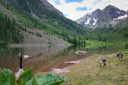 Once you leave the pika behind it won’t be long before you reach your goal—just a few more switchbacks, and a little more climbing through the ancient rockslide that holds Crater Lake, and you will finally reach your destination. Your reward for climbing is a more intimate view of the awe-inspiring Maroon Bells, including 14,165 foot Maroon Peak, which makes for the perfect day hike.