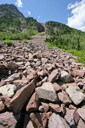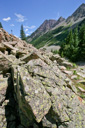As we hiked around the area in search of the waterfall, we found a side trail that led us to a large hill of boulders that was home to several yellow-bellied marmots. We stayed at the boulders for several minutes and watched the marmots sun themselves, and we listened as they whistled their warnings to anything in ear shot.