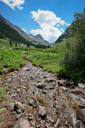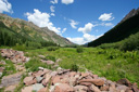 As we neared the basin that cradles the lake, we entered the rocky terrain of the alpine tundra—several unique plants and animals call the tundra home, including the pika. Listen when you stop to catch your breath while passing through this zone and you will most likely hear the high-pitched chirp of this rabbit-like animal. Once you hear their call take a quick scan of the rocks and you will see them busily scurrying about gathering food for storage—pika have always provided us with unlimited entertainment while hiking through a high altitude paradise.
