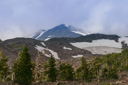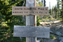 We set out on the trail under blue skies, armed with crampons and ice axes, with hopes of a summit and a fun glissade (our first) down the mountain. The first part of the trail, as mentioned earlier, is wide and easily navigated as it follows the remnants of an old road. The views are limited along this section, as you are still below treeline at this point in the hike. At about the 2 mile mark you will reach timberline and the intersection with Round-the-Mountain Trail #9 where you have a good view of Mt Adams in front of you and of Mt Hood to your back. Continue along South Climb #183 past summer wildflowers and gnarled trees and you will soon be rewarded with a spectacular view of Mount St Helens to the west. In just a few days we would be climbing St Helens, almost ten years to the day from our last climb to her summit, or at least that was the plan. Unfortunately, weather (that lovely rain cloud that plagued most our 2004 hikes followed us here too—at least we ended the drought for the Pacific Northwest) and other circumstances caused us to forfeit our permits. But we didn’t know that at the time and it was a thrill to see the volcano from the slopes of another mountain.