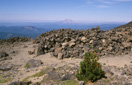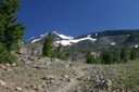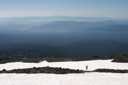 The trailhead leaves from the end of Forest Road 8040500 near Cold Springs Campground. The starting elevation is about 5,360 feet and is approximately 5.7 miles from the summit of Mt Adams. The trail is easily followed at first, as it is maintained, to about the 8,000 foot mark. This elevation marks the start of Crescent Ridge and the beginning of the unmaintained trail to Lunch Counter at about 9,000 feet. The Lunch Counter is a flat area on the mountain where it is traditional to stop and either camp if you are backpacking, or eat lunch if you are day hiking. From there the route gets even more sketchy as you hike over snow and boulder fields on your way towards Pikers Peak (the false summit) at 11,700 feet. From Pikers Peak the summit lies to the Northwest, approximately 600 feet higher, across a saddle.