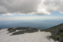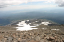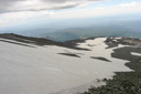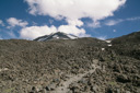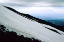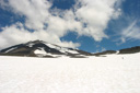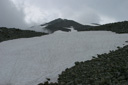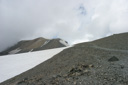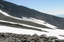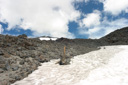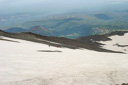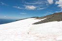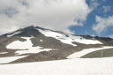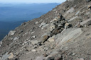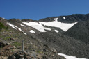 The going was really rough for both of us, but we managed to climb another 1,040 feet before we stopped for a break. We had skirted the edge of Crescent Glacier, made our way past the Lunch Counter, and were now at 9,050 feet. It was 12:30pm and we were ready to begin the steep climb up the snowfield to the false summit of Pikers Peak. The snow was a good consistency and crampons were not necessary for the climb, we would also occasionally hike along the boulders of the talus ridge just west of the snow field if we felt we needed a better foot hold. This part of the climb was excruciating! I don’t think I have ever used as much profanity on a hike as I did on this one. I swear the slope was nearly a 45 degree angle! On any other day I would have enjoyed the challenge, but on this day I just wanted to sit down and end the misery, but on I trekked.