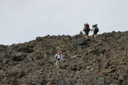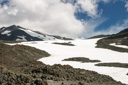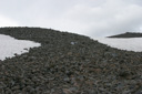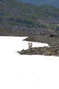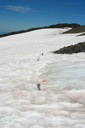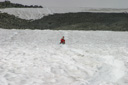 Our next decision would be whether or not we should glissade down the snow field or hike down the talus ridge. Well that was a no-brainer! I think we would all choose sliding down on our butts in the snow over that knee-jarring climb down the rocks anytime! We had never glissaded before, so it was a little intimidating at first. It looked really steep, but it also looked like wicked fun. All we needed to do was control our speed with our axe, so we geared up with our ice axes and hit the chute.