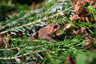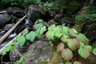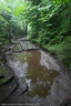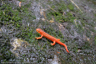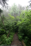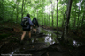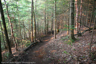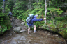 As we descended from the summit of Marcy, the claps of thunder sounded off with increasing frequency—announcing the approach of the storm—we could only hope that the lightning bolts would keep their distance. The rain and cold wind soon joined the drama, making the climb down the steep rocky slope a rather treacherous endeavor. Dar opted to tackle several sections with a crab-walk technique, but Pick and I felt safe walking normally—each of us slipped a few times, but nothing that amounted to a fall. For the remainder of our hike, the thunder and rain would come and go, but thankfully, we never encountered any lightning strikes. The rain soaked trail did yield some interesting hiking techniques however, often slowing us down to a pace that allowed us to enjoy the song of several white-throated sparrows—identified by the mnemonic Old Sam Peabody, Peabody, Peabody—even a little red eft made an appearance on the trail. The saturated colors of the forest, thanks to the overcast skies, really brought out the beauty in the wood sorrel, Indian pipes, bluebead lily, ferns, and lush mosses that line the trail—nothing like beautiful flora to take your mind off puddle jumping.