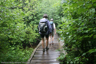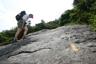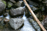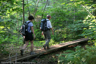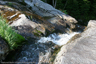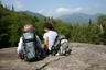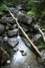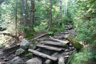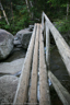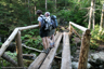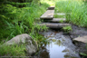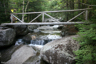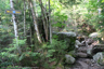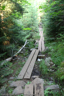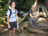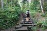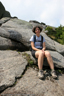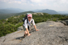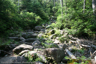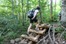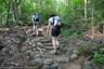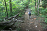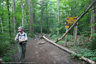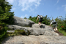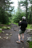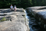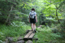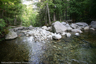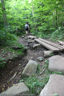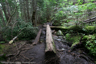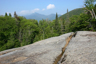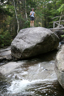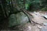 Back on the rocky terrain, we soon reached the high-water bridge that spans Phelps Brook—during low water, you may also choose to cross 500 feet upstream via the boulder-strewn streambed itself—either way, you end up on the opposite bank where your climb continues. In another mile, approximately 3.5 miles from the trailhead, you will once again cross Phelps Brook. On your way, look for the signed junction for Phelps Mountain—when you arrive, look for the large boulder encased by the roots of a tree—an interesting conundrum. When you reach the second crossing of Phelps Brook, you just might be ready for a dip in the stream—it was nearing the 9:00 am mark when we arrived and the summer heat and humidity were already starting to build. We stopped at the bridge and snacked on trail food before tackling the next section—a steeper climb and larger boulders lie ahead.