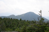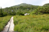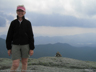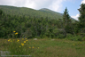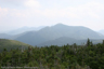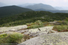 After returning to the trail proper, resume your climb towards the summit—shortly, you will reach the signed Lake Arnold trail junction—take a left and continue following the blue disks. From the junction, the trail traverses several sections of steep boulder climbing, interspersed with a few level sections—moss, clover, and bunchberry carpet the ground. Several portions of the trail along this section become muddied by an underground spring, but corduroys (closely placed logs) provide for a pleasant crossing. Up ahead, we joined the Hopkins Trail (11:10 am/6.2-mile mark) and decided to stop for lunch at the trail junction—string cheese and ham (kept cool by my camelback bladder), macadamia nuts, apples, oatmeal bars, and trail mix were all on the menu. The lunch stop would have been perfect, had it not been for a few pesky black flies that decided we were on their lunch menu—added incentive to keep moving. After about a fifteen-minute break, we carried on down the trail, shortly reaching an open meadow complete with our first view of Mt Marcy—spectacular, but an even better view awaits just ahead, this one featuring Little Marcy, treeline, and the broad summit of Mt Marcy. There is also an excellent vantage point that features a perfect view of Mount Haystack and Little Haystack. The view is beautiful but daunting, a reminder of the climb yet to come—thankfully, it is easier than it looks.
