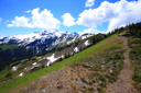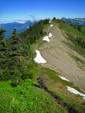 At 2 miles, you will exit the forest and emerge on the open ridge of Skyline Divide—more than likely, you will be greeted with patches of snow, resplendent meadows, and a view of 10,781 ft Mount Baker that will knock your Smartwools off!