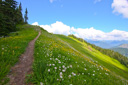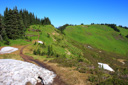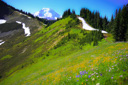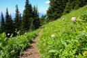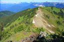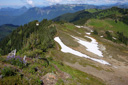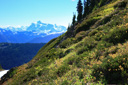 Continue following the ridge trail, admiring not only the views of Mount Baker but also Mount Shuksan to the southeast—at this lofty 6000 foot elevation, on a clear day, you can also see the San Juan Islands to the west, Vancouver Island to the north, and the peaks of the Olympic range to the south. You might also see, or at least think you see, Julie Andrews spinning through the meadows a la “The Sound of Music”—hands up, who knows the words to Climb Ev’ry Mountain?