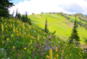 Forested miles of evergreens, high alpine meadows chock full of summer wildflowers, and an in your face view of Massive Mount Baker await on this spectacular 10-mile roundtrip hike—this is the Skyline Divide Trail.