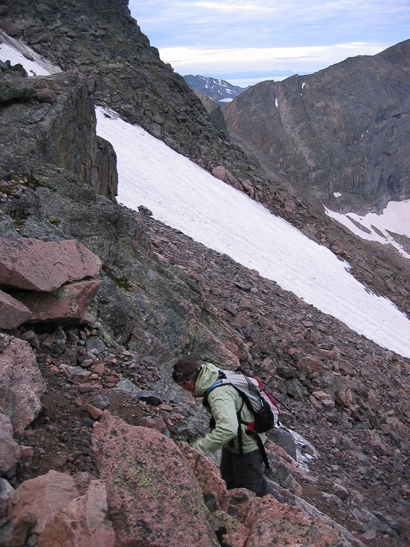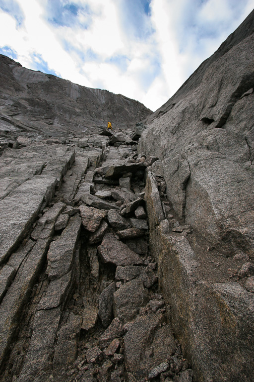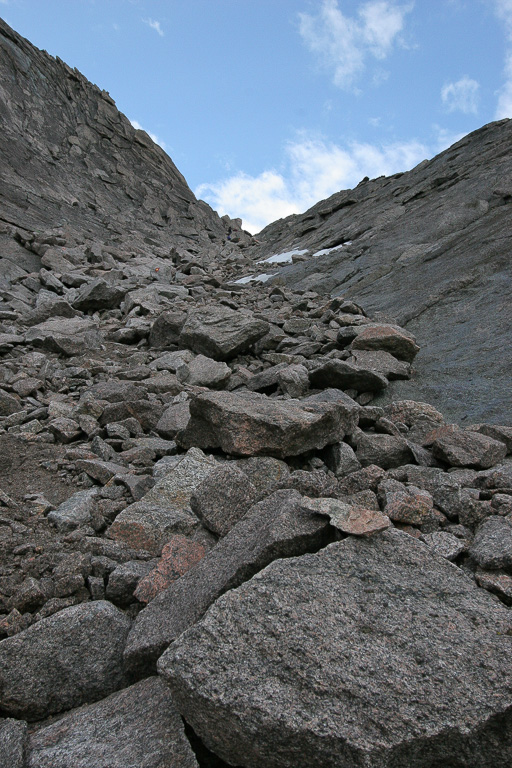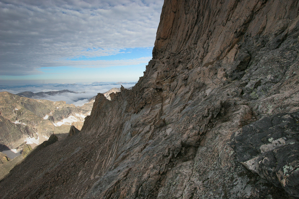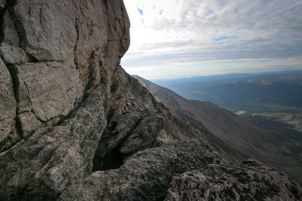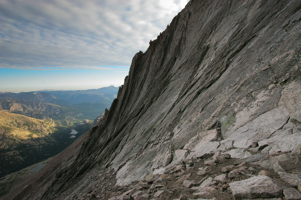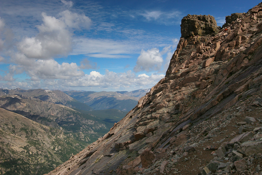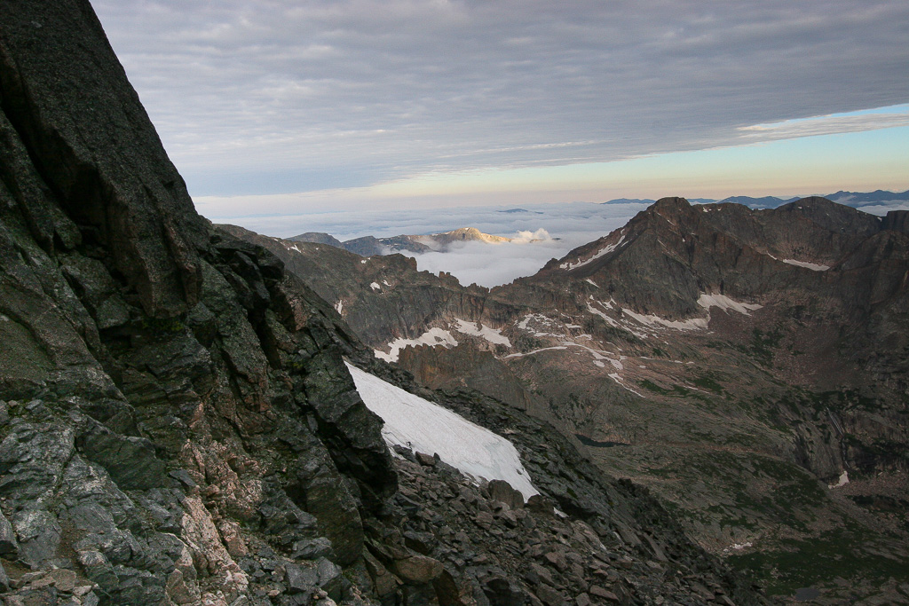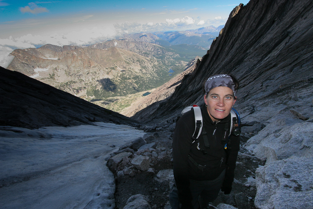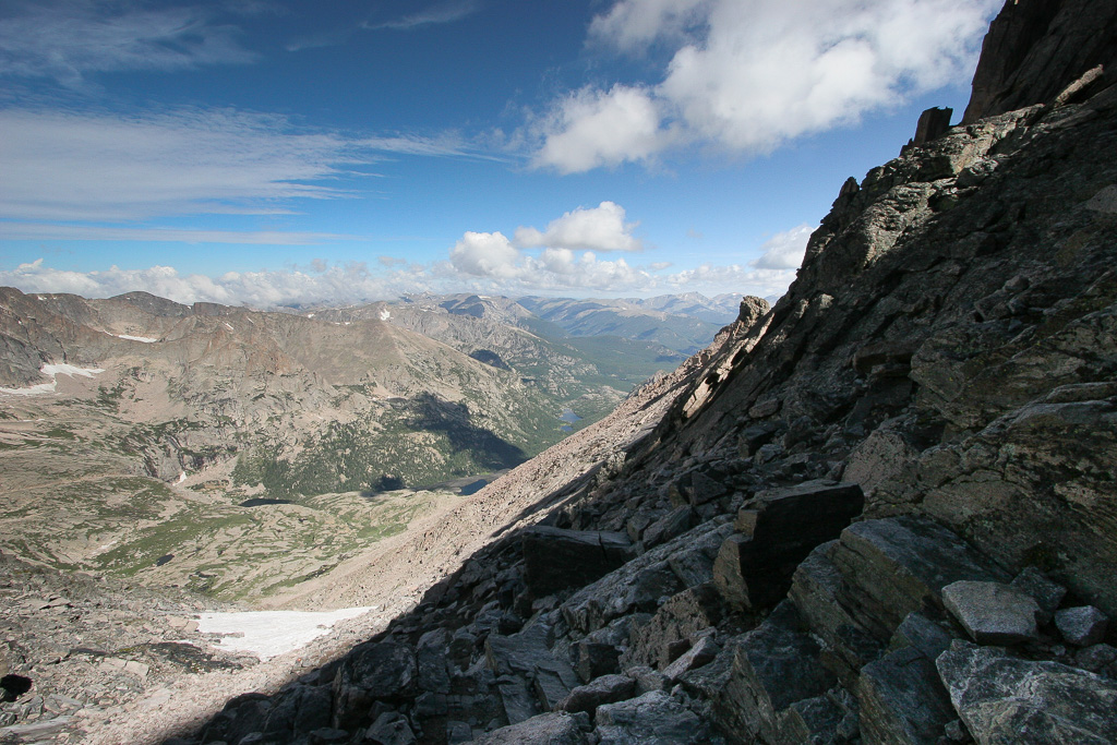 View from the top of the 600ft couloir known as The Trough - Longs Peak