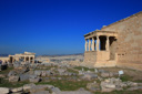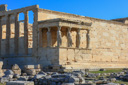 The last, but not the least, site to behold on the Acropolis is The Erechtheion - the Erechtheion is a much smaller temple than the nearby Parthenon, but no less impressive. It has a strange design as it is built on very uneven land, and different parts of the temple were built separately – the statues holding up the roof of the ‘Porch of the Maidens’ are known as the Karyatides. Before you are copies - the original statues are in the nearby Acropolis Museum, except for one, which is in the British Museum in London.