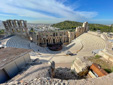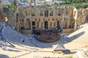 Continuing along the path upwards to the entrance of the Acropolis you come across the impressive birds-eye view of the Odeon of Herodes Atticus - this stunning open-air theatre, distinctively Roman in contrast to the Theatre of Dionysus, with its Roman arches and three-story stage building, it was originally partly covered with a wood and tiled roof.