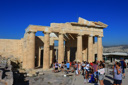 The Propylaia — the monumental gateway to the Acropolis, served as a partition, separating the secular and religious parts of the city. This imposing, magnificent structure is likely to give you chills as you pass through the marble forest of towering columns - once you reach the top of the steps of the Propylaia and turn to look out towards Athens, you’ll notice a very small temple on your left, this is The Temple of Athena Nike.