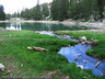The Alpine Lakes Loop Trail is one of the most popular hikes in Great Basin National Park, and for good reason, as it leads to a dramatic alpine setting with a barren sawtooth ridge rising above the surface of two lakes. The trail is 2.7 miles long and it is located between the trail to the Bristlecone Pine Grove and the Wheeler Peak Trail. The trail connects two very beautiful lakes, Teresa and Stella Lakes, which are actually shallow tarns (10 feet deep at the most) that freeze solid in the winter. Teresa Lake is fed by a nearby spring, which flows into the lake via a stream banked by vivid green grass and a carpet of wildflowers in the summer, including Parry’s primrose, penstemon, and phlox. Stella Lake, the first lake we visited, has excellent views of Wheeler Peak and Jeff Davis Peak and it has a stand of aspen growing on its western bank. The loop can be hiked in either a clockwise or a counter-clockwise direction. If you choose to hike in a counter-clockwise direction, you will reach Stella Lake first—we hiked this trail on our return from the summit of Wheeler Peak, therefore we hiked in a counter-clockwise direction. When we reached Teresa Lake I could not resist the chance to soak my feet in her cold waters, it was just what my tired soles needed.