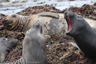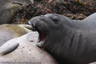 Spectacular undeveloped coastline, native wildflowers, and unsurpassed viewing of northern elephant seals are among the many reasons to hike this 3.2 mile trail along the California coast. The trailhead is located at the southwest edge of the parking lot—from there take the signed trail a short distance to a T junction, turn right and continue along the Año Nuevo Point Trail. As you hike through the coastal scrub, take note of the blackberry brambles, coyote brush, and grasses—at approximately the 0.1 mile mark, you will pass the remnants of the schooner Point Arena, which was shipwrecked in 1913. Stay to the right once again, following the Año Nuevo Point Trail further into the thicket of scrub bushes—passing a nice pond with good bird viewing—beware of poison oak in this area. Continue hiking through the coastal vegetation until you reach the Staging Area Exhibit at mile 1.0, check out the kiosk and then follow the trail towards the point—the hike is easy and flat but now mainly in sand. During the spring and summer, hikers are treated with towering blooms of yellow bush lupine on both sides of the trail along this section—spectacular! A spur trail on the left leads to an excellent overlook with great views of the cliffs and of Año Nuevo Island—the home of a dilapidated lighthouse, seabirds, and marine mammals—the ruins lending a spooky feel to the landscape. Return to the main trail, pass by a bench on the left, and continue making your way towards the seal viewpoints—now just a short distance away. Make your way up the sand dune until the trail levels out, from this point you can choose to visit either South Point, Bight Beach, or North Point—don’t fret the choices, they all allow for fantastic seal viewing and can be visited in any order. Dar, Pick, and I opted to explore South Point first, where we were treated to views of hundreds of northern elephant seals that had come ashore for their molt. At each viewing area, a docent was on duty to answer questions and provide valuable information about the marine mammals in the area—most even had a spotting scope set up for a closer look at the elephant seals and other wildlife. After viewing the animals, retrace your steps back to the parking lot, keeping a watch for seals that may be sleeping close to the trail—stay as far away as possible from these wild seals (25 feet is recommended).