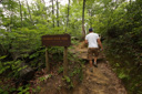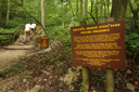 The Original Trail begins at the end of the upper parking lot behind the Hemlock Lodge—the wide, heavily used path of sand and gravel then climbs steeply from the lodge to the base of Natural Bridge. The final climb to the arch skirts along towering sandstone cliffs before rounding a corner for the first, and very impressive, view of Natural Bridge—explore the base of the arch and then make your way to the top of the span through the narrow passageway known as Fat Man’s Misery. This tight squeeze, the product of a natural fracture, is located on the left side of the arch where it leads upwards via several steps until reaching the top of the arch—a dizzying 1,280 feet above the ground. Once on top of the arch, cross to the other side by walking the length of the span—the top of the arch is a long, thirty foot wide pathway similar to an airport runway, the exception being the 1,000-foot drop on either side.
