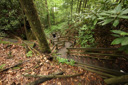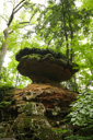 Descending via the Balanced Rock Trail, a much better choice than climbing up the wooden stairways that consist of nearly five hundred steps, takes the hiker past several scenic wonders—including a recess cave, huge fern covered boulders, and Balanced Rock. Balanced Rock is a tremendous sandstone boulder perched atop a foundation that is slowly eroding away—a highlight not to be missed.