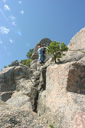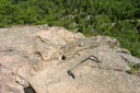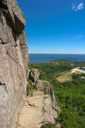The views just get better the higher you go, but if you aren’t too afraid of heights to look from here, you can see Sand Beach far below. Your next obstacle to overcome will be to climb up the iron rungs, using them as both hand and footholds—these can be intimidating, but they are a blast to climb! If you just take your time, and carefully climb, you will be at the top in no time—you are now 0.5 miles into the hike and you can safely take in the summit panorama without feeling like you are going to fall off the edge. Indeed, the views from the summit are excellent—along with Sand Beach, you can see Frenchman Bay and the Porcupine Islands, also visible are Champlain Mountain and Cadillac Mountain—take it all in as you bask in the Maine sun.