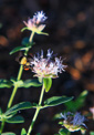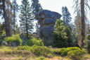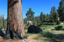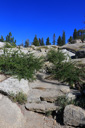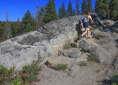 The trail to the top of Buena Vista Peak climbs through a thin swath of a mixed hardwood/evergreen forest and picturesque meadows dotted with wildflowers before following a granite ridge dotted with massive boulders - here the route is marked by cairns.