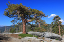 As the trail climbs from the road, the views begin to open – you can see down to the highway several feet below and above to the high Sierra on the horizon. The summit is visible ahead, rising above a steep, tree-covered slope - the single-track path crosses dirt and exposed granite bedrock as it shoots south toward the summit. The path then curves to the left as it switchbacks up the mountain to the peak. There, sweeping views from the relatively easy accessed summit, are among the best for your effort - highlights include Redwood Canyon directly below, Park Ridge, Spanish Mountain, and Kings Canyon to the north, Big Baldy to the south and countless Sierra Nevada peaks to the east.