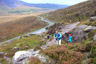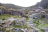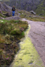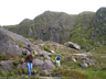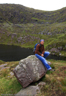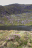 Continue climbing the unmarked path, choosing the route as you go, until you gain the top of the ridge—Pedlar’s Lake, a corrie or glacial lake, is now visible surrounded by huge glacial erratics and towering rocky peaks. You can now explore the small loch at leisure, noting the unique vegetation and lichen covered granite slabs that color the terrain—when you return to the car, watch for an interesting erratic that has been split in two by the forces of nature.