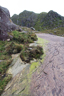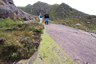 The dramatic landscape of Conor Pass, also known as Conor Hill Road, beckons to the hiker imprisoned in the confines of a car—when you hear the call, don’t fight the urge to park the car and set off on foot, several walking paths allow the adventurous to explore the Irish countryside. One such path, located just north of Conor Pass, can be accessed by parking in the cramped car park adjacent to the small waterfall clearly seen from the road—the cascade, fed by a stream running from Pedlar’s Lake to the Owenmore Valley, tumbles over a ridge of rock just feet from the road.
