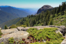 On a whim, Pick and I decided to follow the High Sierra Trail to Bobcat Point—a rock outcrop with a scenic view of the Middle Fork Kaweah River Canyon and Moro Rock. To reach the overlook, follow the High Sierra Trail to a junction 20 yards down the trail, bear right towards Moro Rock—a left leads to another viewpoint, Eagle View. Climb the forested, wildflower-lined trail to the ridge overlooking the canyon, and then continue hiking along the edge of the canyon to Kaweah Vista—the first overlook along the rim of the canyon. Bobcat Point is just a short distance downhill from Kaweah Vista—wildflowers were abundant at the point and the views of the river valley and Moro Rock were splendid.