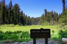 Proceeding west, the trail loops around and skirts the sunlit southern side of the meadow before arriving at the picnic area and trailhead for a roundtrip hike of 1.8-miles.