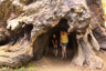 Leaving the southern end of the meadow, the trail travels north along the southeast end of the meadow and reaches a dirt track that leads to the Cleveland Tree and Chimney Tree¬—stay on the paved path to view Tharp’s Log and Log Meadow. We followed the dirt track, enjoying our first opportunity to get truly close to a giant sequoia tree—trees along most other trails are fenced in to protect them from the trampling masses. On the Crescent Meadow Loop, you can walk right up to a giant sequoia and give it a hug—if you’re a tree hugger.