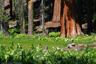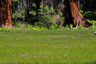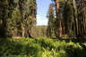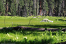 Back on the paved loop trail, we rejoined Sully and Banana and made our way to the southern end of Crescent Meadow—a wide-open swath of greenery lined with towering firs and sequoias is your introduction to the meadow. In the spring and summer, wildflowers such as lupine and Indian paintbrush bloom among the green corn lilies and grasses of the meadow—autumn brings a splash a yellow from goldenrods.