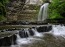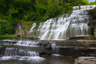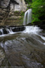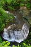 Eagle Cliff Falls, located within the quaint city park of Havana Glen, is the product of McClure Creek cascading 40 feet over the shale cliffs of the deep gorge—the wide plume, nearly 20 feet across, plunges through a notch in the rock walls into an emerald pool, before continuing along its multi-tiered course over a series of ledges.