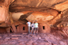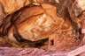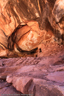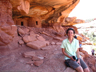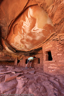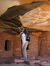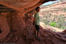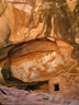 Fallen Roof Ruin, a magnificent example of Anasazi life, consists of four small rooms—three of which remain perfectly intact, complete with ancient hand prints painted on the rock ceiling. You are free to explore the ruin, but be mindful of where you step or place your hands and, of course, do not enter the rooms—any misstep could damage the ancient structures. Pick, Dar, and I spent close to an hour enjoying the beauty of the ruin, taking particular note of the amazing light that reflects from the canyon in mid-morning to cast a warm glow on the alcove—midmorning is the best light for photography.