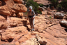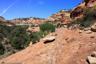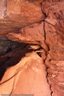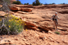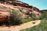 From the parking area, a well-defined trail lined with cryptobiotic soil crust, wildflowers, and an occasional lizard, allows the hiker access to the west end of Road Canyon. The trail then veers north along the rim of the canyon for bout 0.3-mile before descending to the canyon bottom via an easily missed spur trail—watch for cairns that mark the descent. Scramble approximately 125 feet down the rocky slope to a wash that connects Road Canyon with a small side canyon—turn east and hike into Road Canyon.