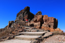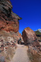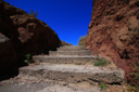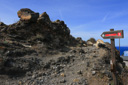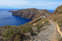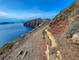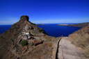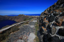 Just behind the snack shop, you will leave the road and rejoin the gravel path – climbing uphill along a winding trail heading back towards the caldera.