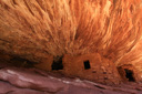 House on Fire Ruin, located in Mule Canyon, is a remote untouched ruin that appears to have flames shooting from the ceiling—the phenomenon is thanks to an interesting pattern in the sandstone roof of the alcove.