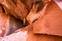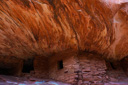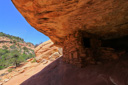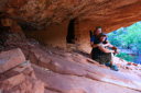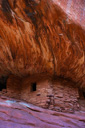 The best time to photograph and explore House on Fire, aka Flaming Ceiling Ruin, is in late morning—if the sun is too high in the sky the ruin will be in direct light, which washes out the fire. We arrived at about 12:30pm and still found the ruins in shade—allowing the reflected light from the canyon to set the house aflame. After we finished photographing the ruins, we ventured into an alcove off to the left where we had read that it was possible to locate some handprints and sure enough we found them with no problem—the haunting look of the ancient handprints is worth the small excursion.