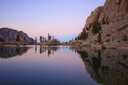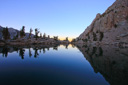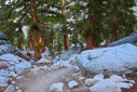 Its waters, mirror-like in appearance, stretch out to the horizon like a natural infinity pool—reflecting the surrounding evergreens, massive boulders, and towering cliffs with perfect symmetry. It’s all down hill from here, the lake is at an elevation of 10,050 feet, so take your time and enjoy the scenery—take a stroll around the lake, sit for a picnic, or simply revel in the landscape.