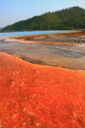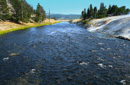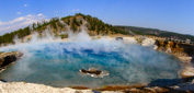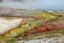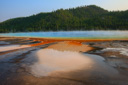 Midway Geyser Basin contains a small collection of mammoth-sized springs, and it is actually part of the Lower Geyser Basin, but because of its isolated location between the main features of Lower and Upper geyser basins, it became known as Midway.